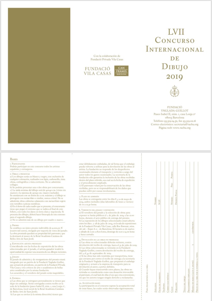 Me complace compartir con vosotros la invitación y las bases del concurso internacional de dibujo de la Fundació Ynglada-Guillot por si alguno pudiera estar interesado.