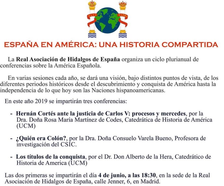 La Real Asociación de Hidalgos de España organiza un Ciclo plurianual de conferencias sobre la America Española.