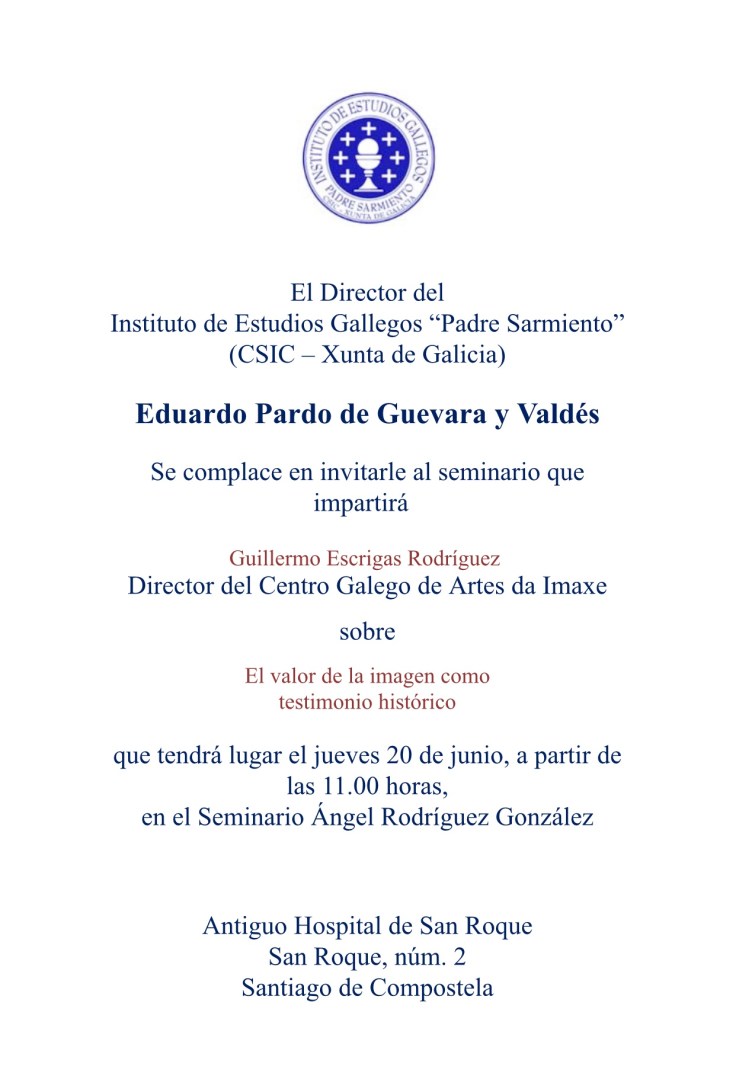 Instituto de Estudios Gallegos “Padre Sarmiento” nos invita al seminario que tendrá lugar el jueves 20 de junio, a partir de las 11.00 horas, en Santiago de Compostela