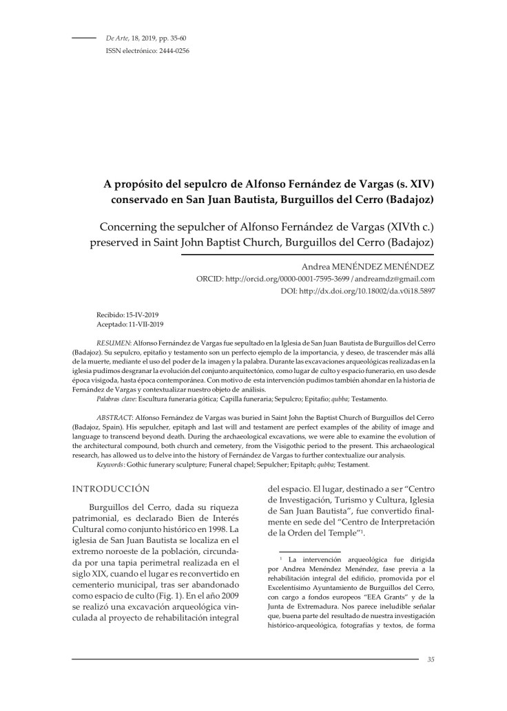 A propósito del sepulcro de Alfonso Fernández de Vargas (s. XIV) conservado en San Juan Bautista, Burguillos del Cerro (Badajoz).