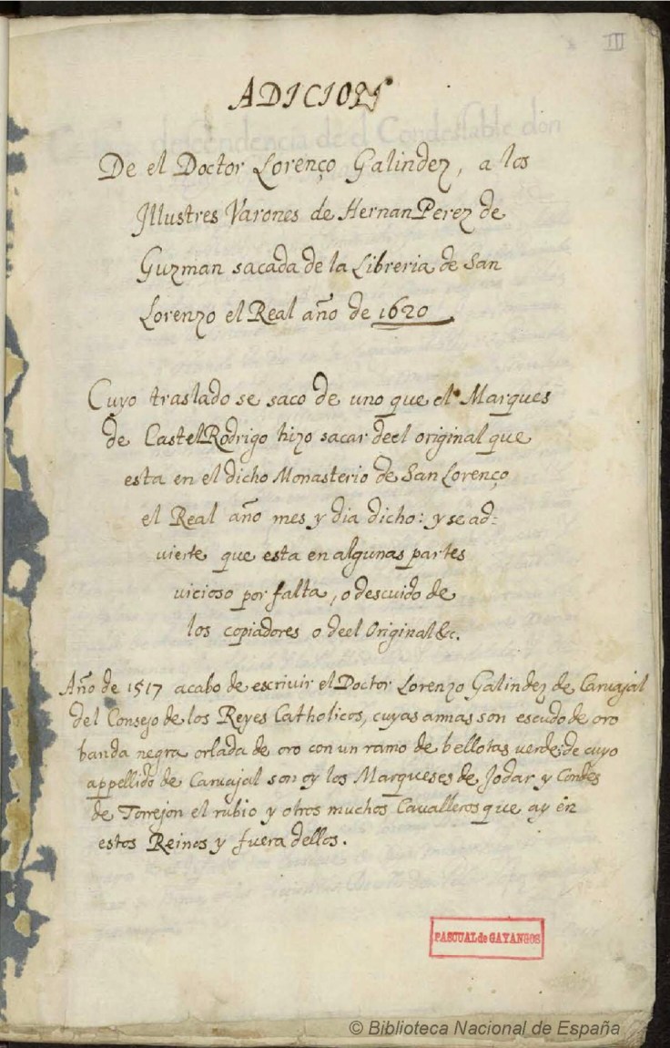Por don Lorenzo Galíndez de Carvajal, 1620.