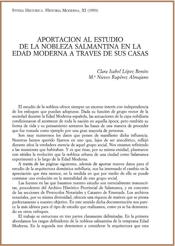Aportación al estudio de la Nobleza salmantina en la Edad Moderna a través de sus Casas