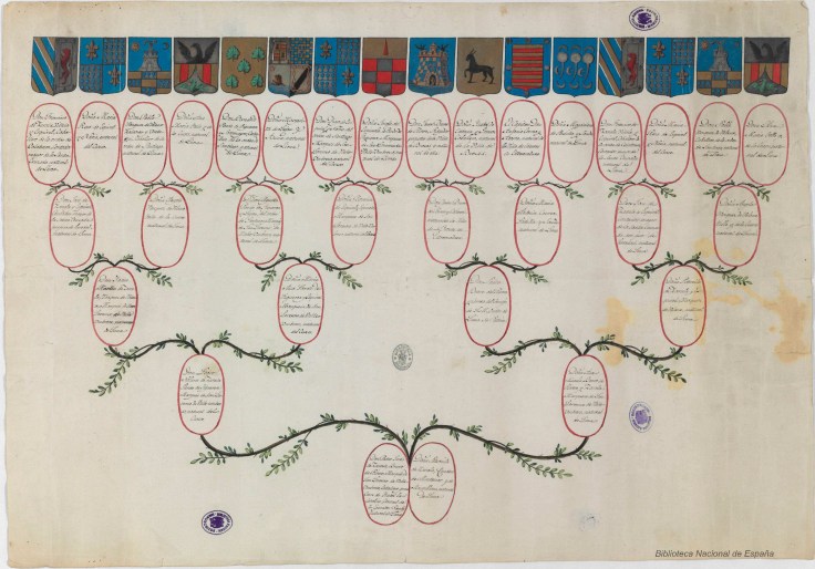 Árbol genealógico de la ascendencia de D. Pedro José de Zavala y Bravo del Ribero, Marqués de San Lorenzo de Valleumbroso, natural de Lima.