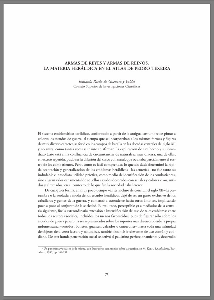 La materia heráldica en el atlas de Pedro Texeira.