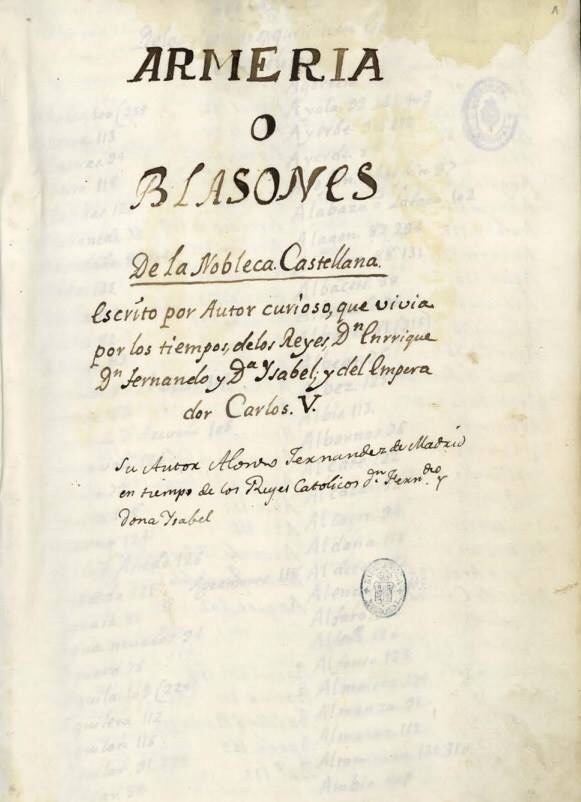 Armería o Blasones de la Nobleza Castellana. Armería o Blasones de la Nobleza Castellana por don Alonso Fernández de Madrid, 1740 IR AL LIBRO Comparte esto: Haz clic para compartir en X (Se abre en una ventana nueva) X Haz clic para compartir en Facebook (Se abre en una ventana nueva) Facebook Haz clic para compartir en LinkedIn (Se abre en una ventana nueva) LinkedIn Haz clic para compartir en Tumblr (Se abre en una ventana nueva) Tumblr Haz clic para compartir en Pinterest (Se abre en una ventana nueva) Pinterest Me gusta Cargando...