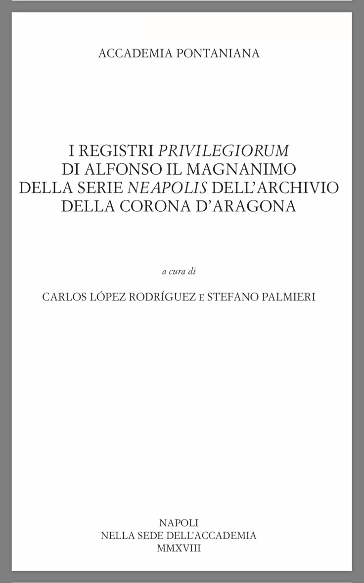 «I Registri ‘Privilegiorum’ di Alfonso il Magnanimo», Nápoles, 2018.