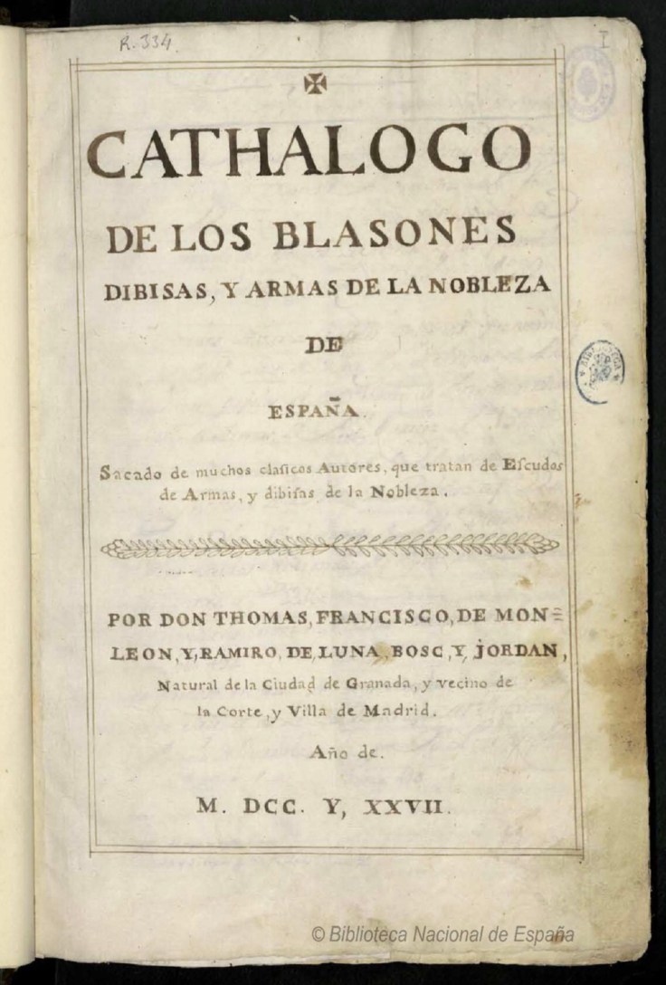 Catálogo de los blasones, divisas y armas de la nobleza de España…