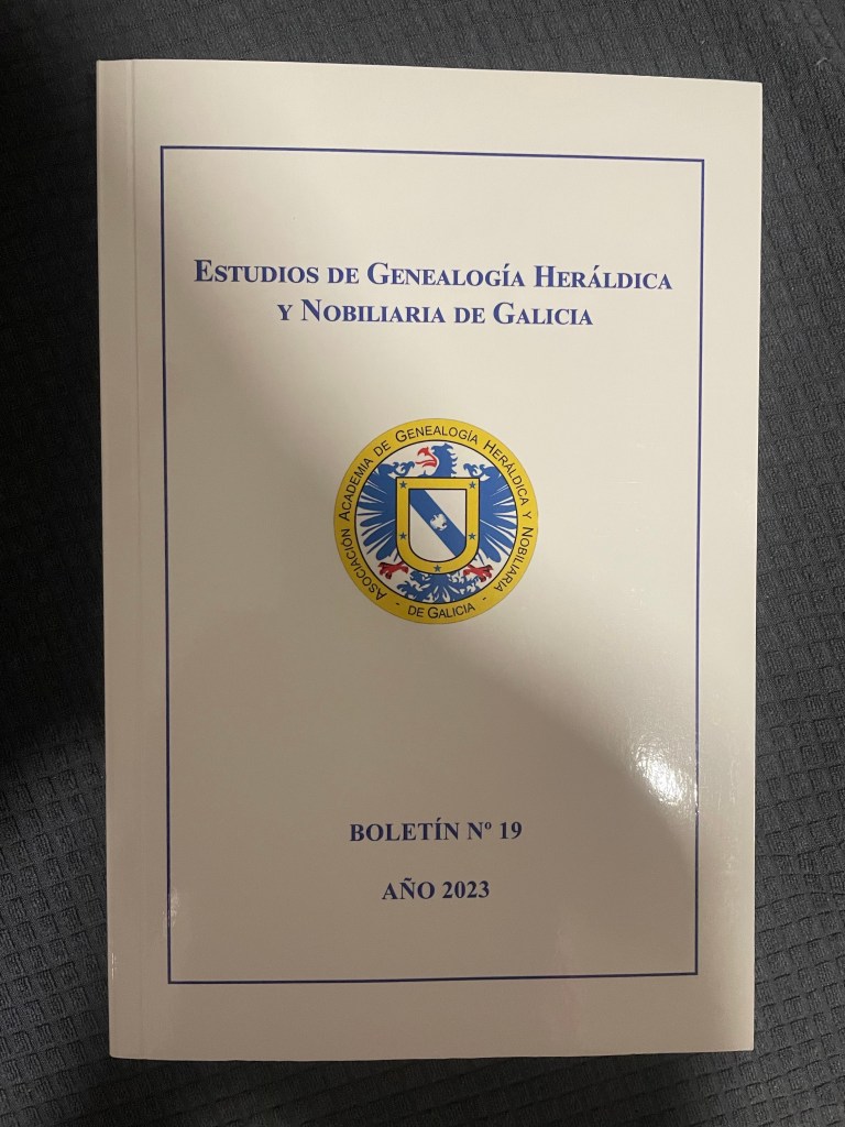 Qué alegría tener en mis manos el Boletín número 19 de la Asociación Academia de Genealogía Heráldica y Nobiliaria de Galicia Unos excelentes trabajos y una muy cuidada edición. Felicidades a los autores (muchos compañeros nuestros) y por supuesto a don Carlos Acuña Rubio por su dedicación e incansable esfuerzo. Mil gracias por hacernos sentir partícipes de ese gran proyecto aunque sea en la distancia.