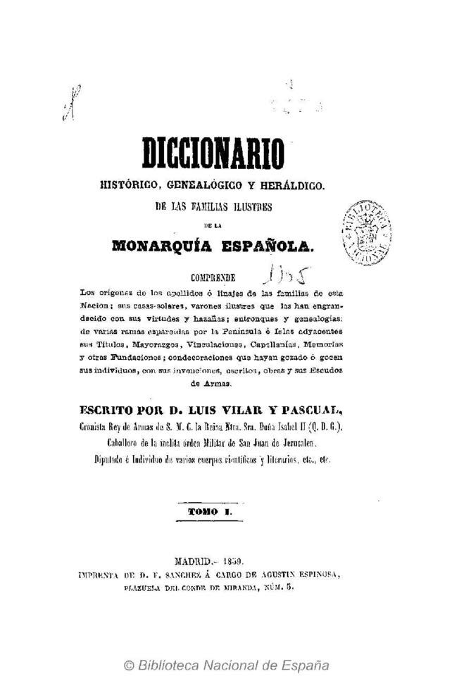Diccionario histórico, genealógico y heráldico de las familias ilustres de la monarquía española : comprende los orígenes de los apellidos ó linajes de las familias de esta Nación…