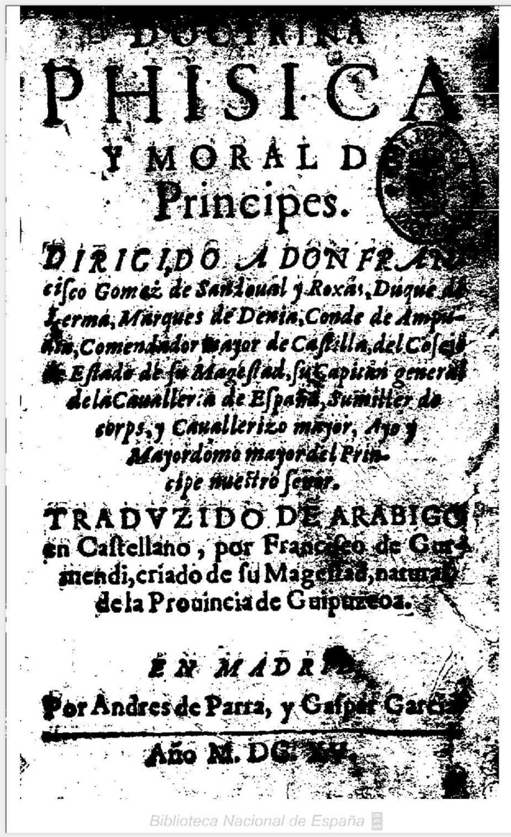 Doctrina phisica y moral de principes … traduzido de arabigo en castellano, por Francisco de Gurmendi … 1615