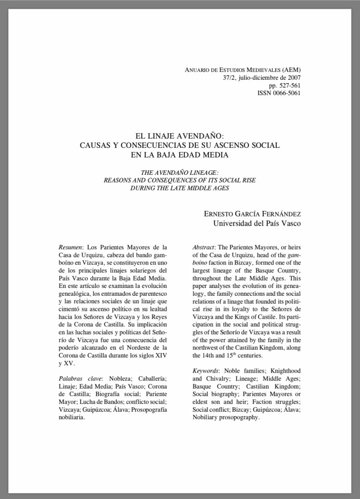 El Linaje Avendaño: causas y consecuencias de su ascenso social en la baja Edad Media.