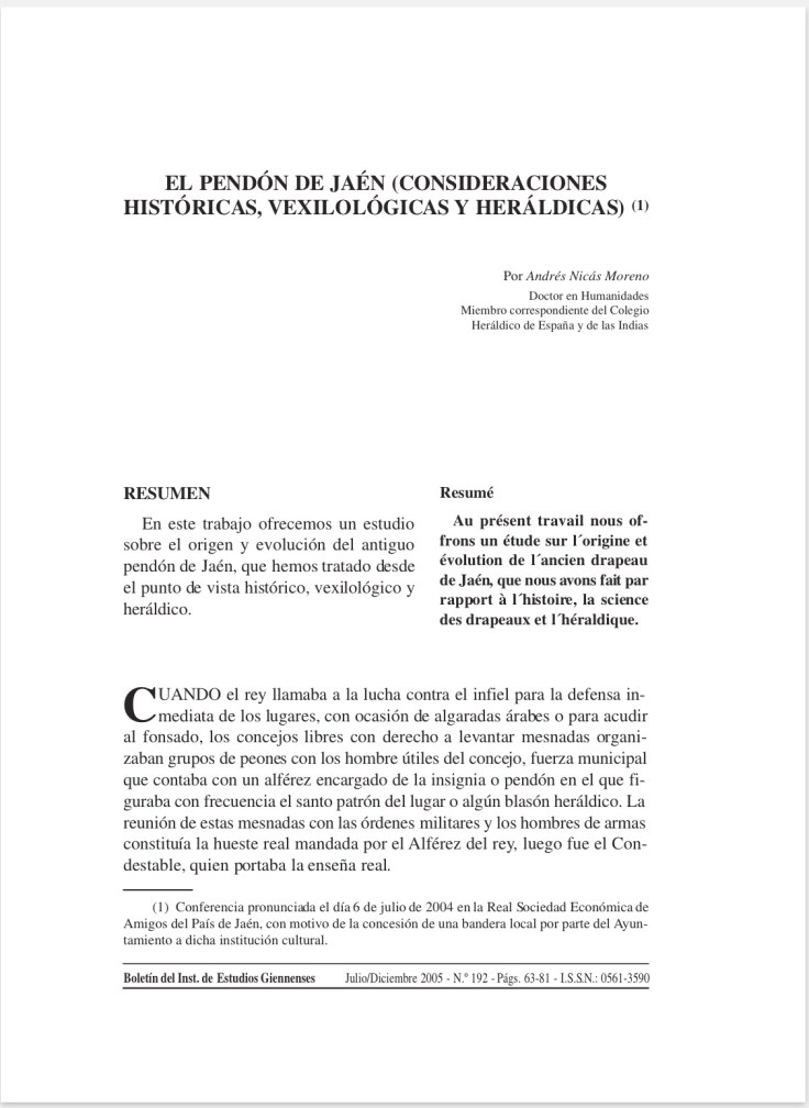 El Pendon de Jaén (Consideraciones históricas, vexilologicas y heráldica).