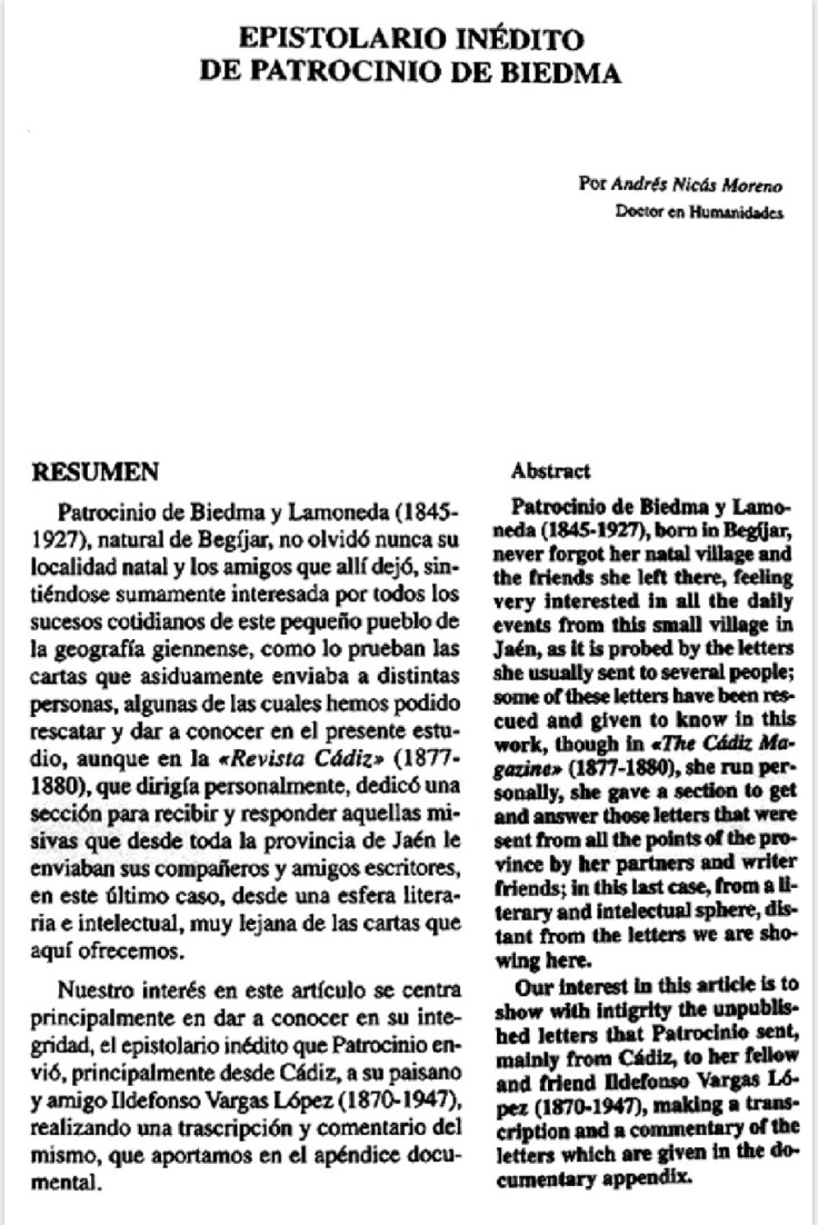Epistolario inédito de Patrocinio de Biedma. Epistolario inédito de Patrocinio de Biedma. Por don Andrés Nicas Moreno. IR AL DOCUMENTO Comparte esto: Haz clic para compartir en X (Se abre en una ventana nueva) X Haz clic para compartir en Facebook (Se abre en una ventana nueva) Facebook Haz clic para compartir en LinkedIn (Se abre en una ventana nueva) LinkedIn Haz clic para compartir en Tumblr (Se abre en una ventana nueva) Tumblr Haz clic para compartir en Pinterest (Se abre en una ventana nueva) Pinterest Me gusta Cargando...