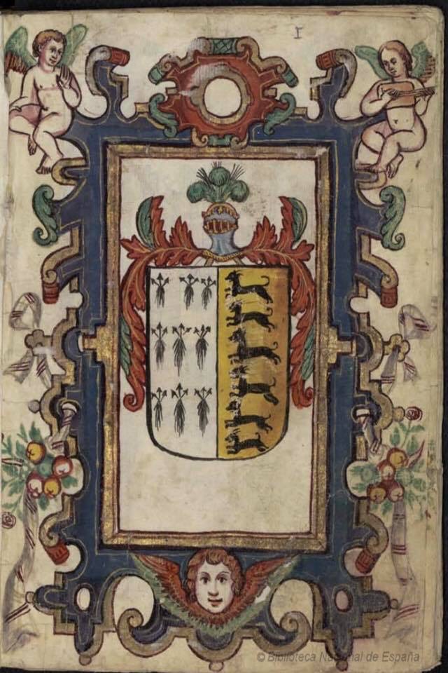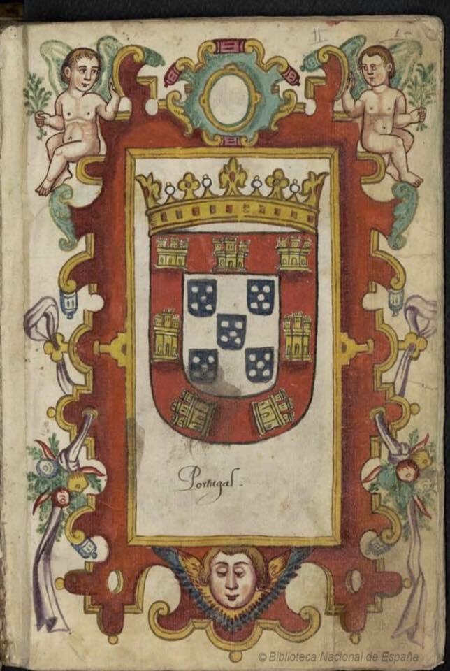 Escudos iluminados de familias de Portugal, de otros países, de regiones y ciudades españolas, de órdenes militares y de apellidos ilustres de España