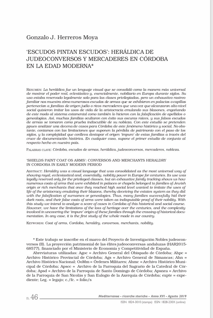 Escudos pintan escudos: Heraldica de Judeoconversos y mercaderes en Córdoba en la Edad Media.