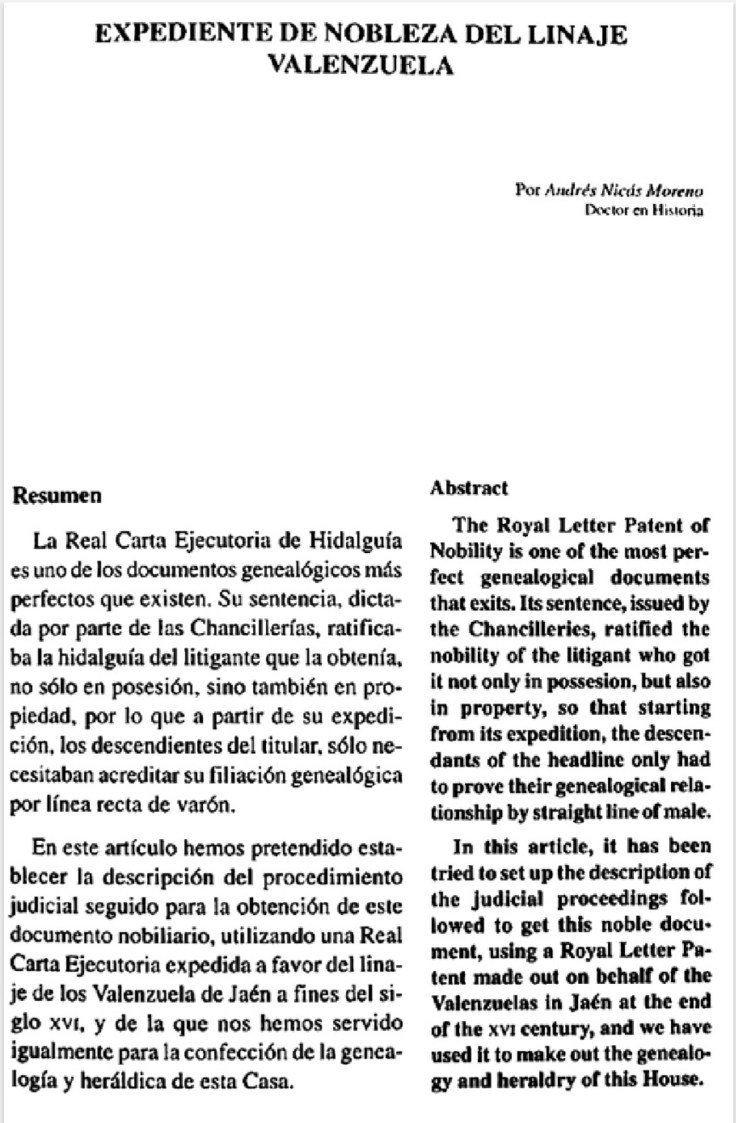 Expediente de nobleza del Linaje Valenzuela. Expediente de nobleza del Linaje Valenzuela. Por nuestro compañero don Andres Nicás Moreno, 1996. IR AL DOCUMENTO Comparte esto: Haz clic para compartir en X (Se abre en una ventana nueva) X Haz clic para compartir en Facebook (Se abre en una ventana nueva) Facebook Haz clic para compartir en LinkedIn (Se abre en una ventana nueva) LinkedIn Haz clic para compartir en Tumblr (Se abre en una ventana nueva) Tumblr Haz clic para compartir en Pinterest (Se abre en una ventana nueva) Pinterest Me gusta Cargando...
