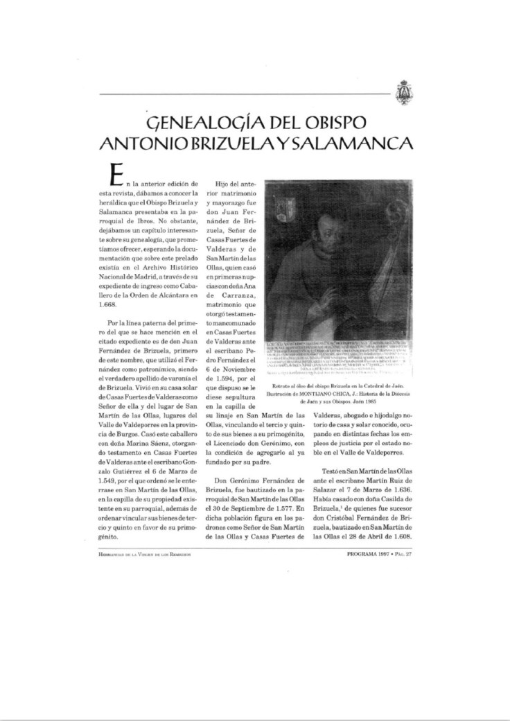 Genealogía del Obispo Antonio Brizuela y Salamanca.