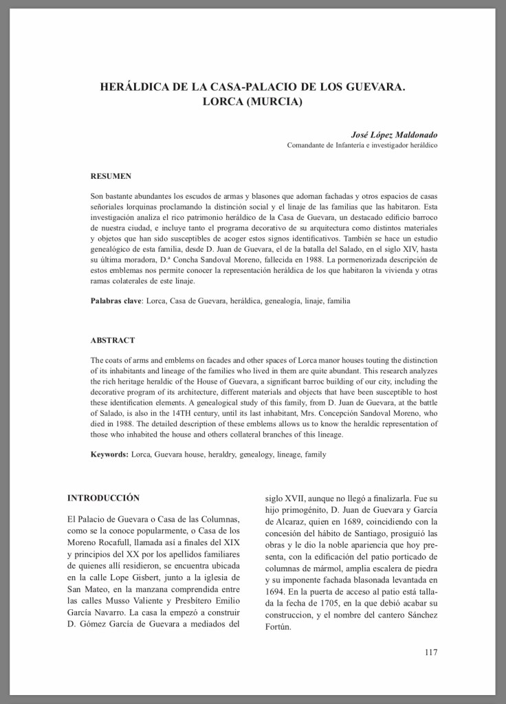 Heráldica de la Casa-Palacio de los Guevara. Lorca (Murcia). Heráldica de la Casa-Palacio de los Guevara. Lorca (Murcia). Por don José López Maldonado IR AL DOCUMENTO. Comparte esto: Haz clic para compartir en X (Se abre en una ventana nueva) X Haz clic para compartir en Facebook (Se abre en una ventana nueva) Facebook Haz clic para compartir en LinkedIn (Se abre en una ventana nueva) LinkedIn Haz clic para compartir en Tumblr (Se abre en una ventana nueva) Tumblr Haz clic para compartir en Pinterest (Se abre en una ventana nueva) Pinterest Me gusta Cargando...