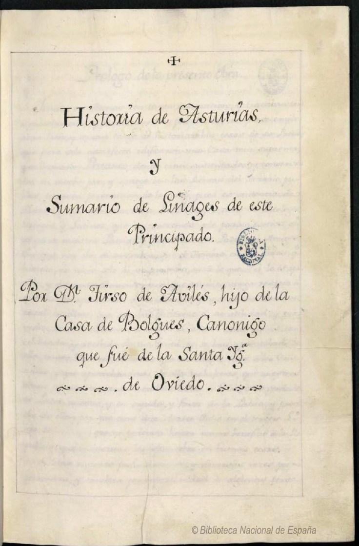 Manuscrito de don Tirso de Avilés, hijo de la Casa de Bolgues, canónigo que fue de la Santa Iglesia de Oviedo, S.XVIII.