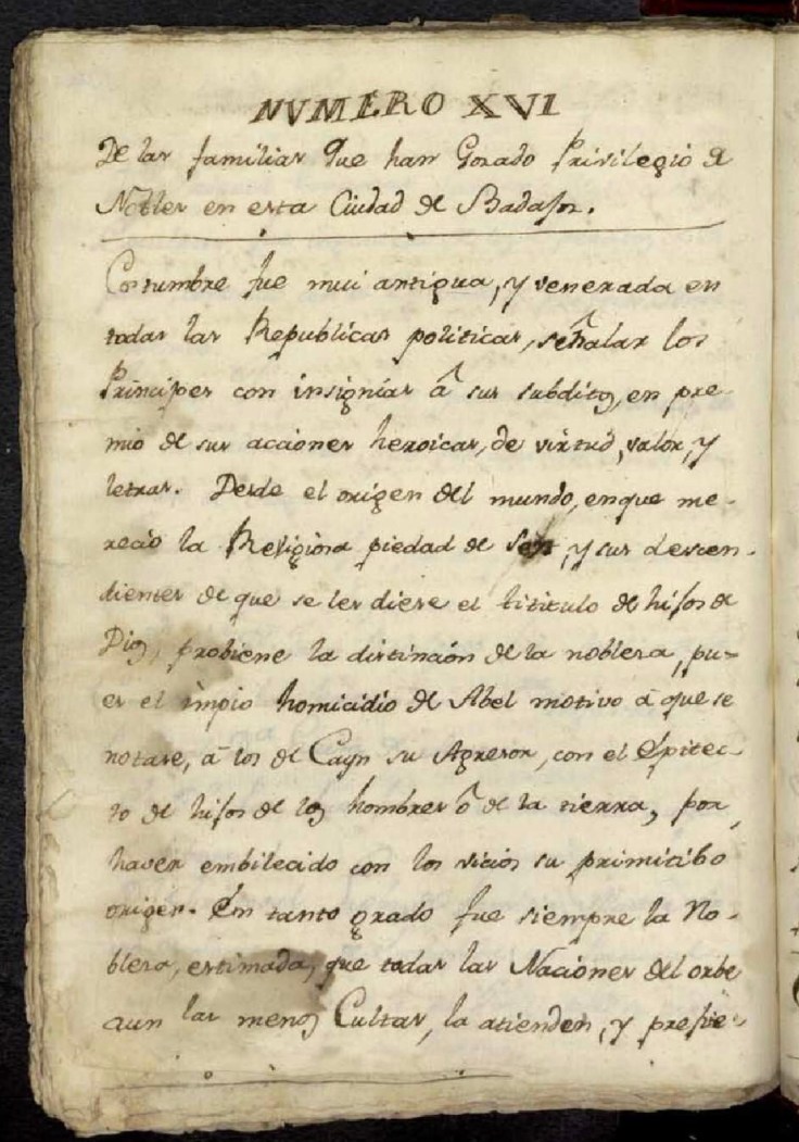 El la página 185: “De las familias que han ganado privilegio de Nobles en esta Ciudad de Badajoz “