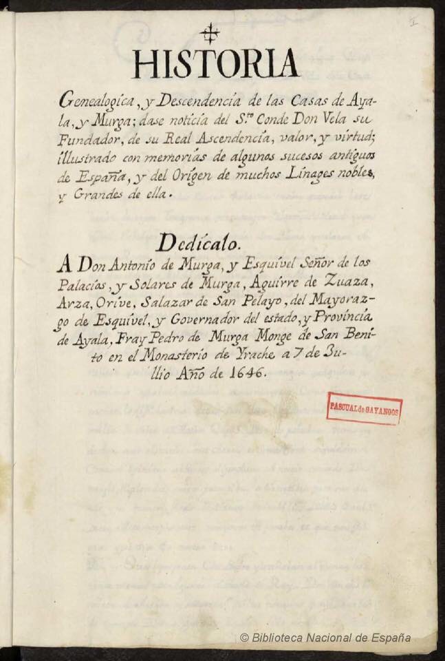 Historia Genealógica y descendencia de las Casas de Ayala y Murga; dase noticia del Sto. Conde Don Vela su fundador, de su real ascendencia, valor y virtud, ilustrado con memorias de algunos sucesos antiguos de España y del origen de muchos linajes nobles y grandes de ella