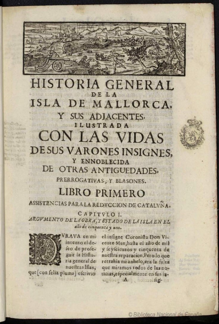 Historia general de la Isla de Mallorca y sus adyacentes ilustrada con la vida de sus varones insignes y ennoblecida de otras antiguedades, prerrogativas y blasones