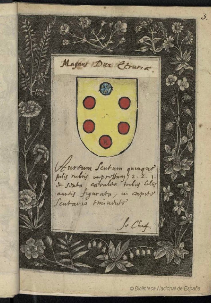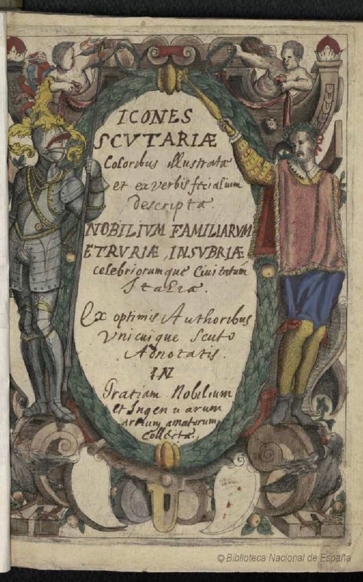 Icones scutariae coloribus illustratae et ex verbis ferialium descriptae nobilium familiarum etruriae, insubriae celebriorumque civitatum Italiae.