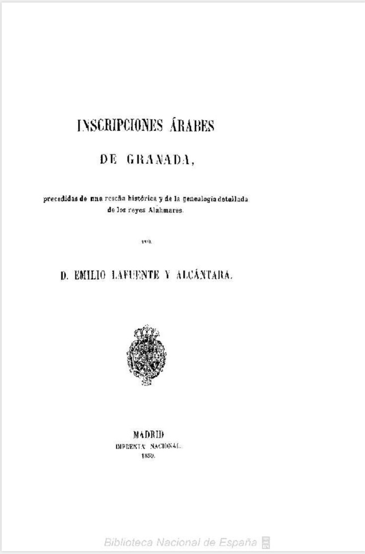 Inscripciones árabes de Granada, precedidas de una reseña histórica y de la genealogía detallada de los reyes Alahmares