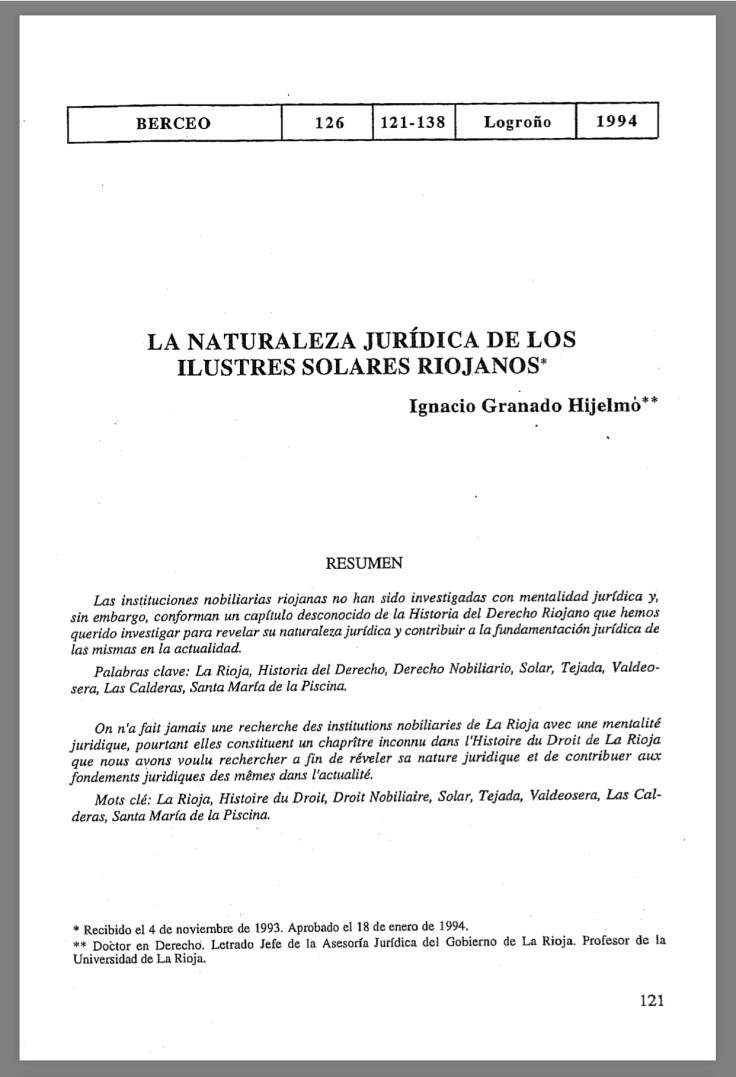 La naturaleza jurídica de los Ilustres Solares riojanos.