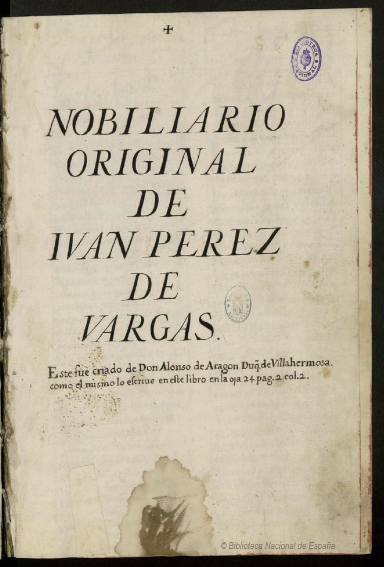 Nobiliario original de Juan Pérez de Vargas Nobiliario original de Juan Pérez de Vargas. Manuscrito del S. XVIII IR AL LIBRO Comparte esto: Haz clic para compartir en X (Se abre en una ventana nueva) X Haz clic para compartir en Facebook (Se abre en una ventana nueva) Facebook Haz clic para compartir en LinkedIn (Se abre en una ventana nueva) LinkedIn Haz clic para compartir en Tumblr (Se abre en una ventana nueva) Tumblr Haz clic para compartir en Pinterest (Se abre en una ventana nueva) Pinterest Me gusta Cargando...
