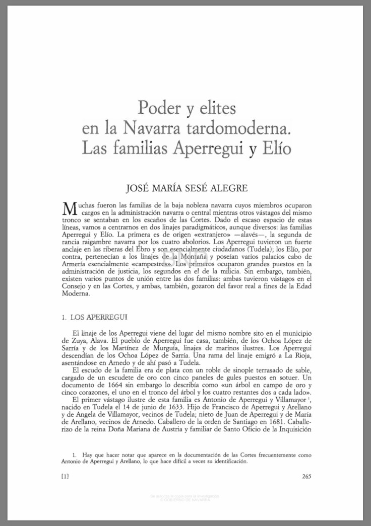 Poder y elites en la Navarra tardomoderna. Las familias Aperregui y Elio.