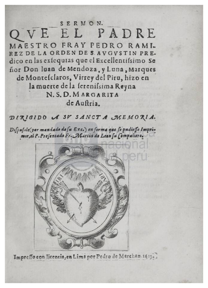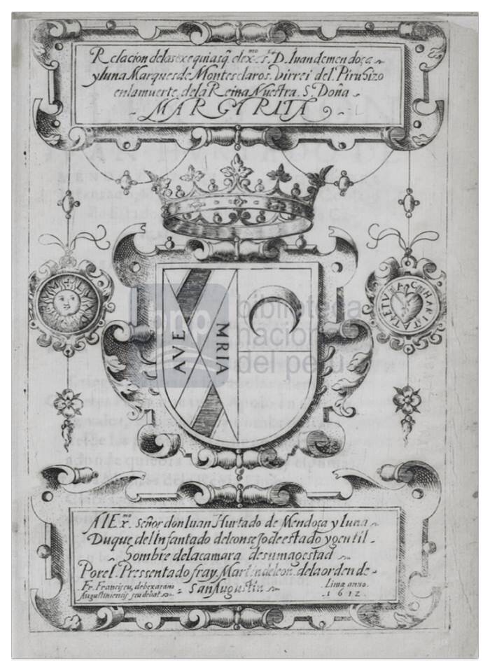 “Relacion de las exequias q el exmo sor D Juan de Mendoca y Luna Marques de Montesclaros Virrei del Piru hizo en la muerte de la Reina Nuestra S Doña Margarita”.