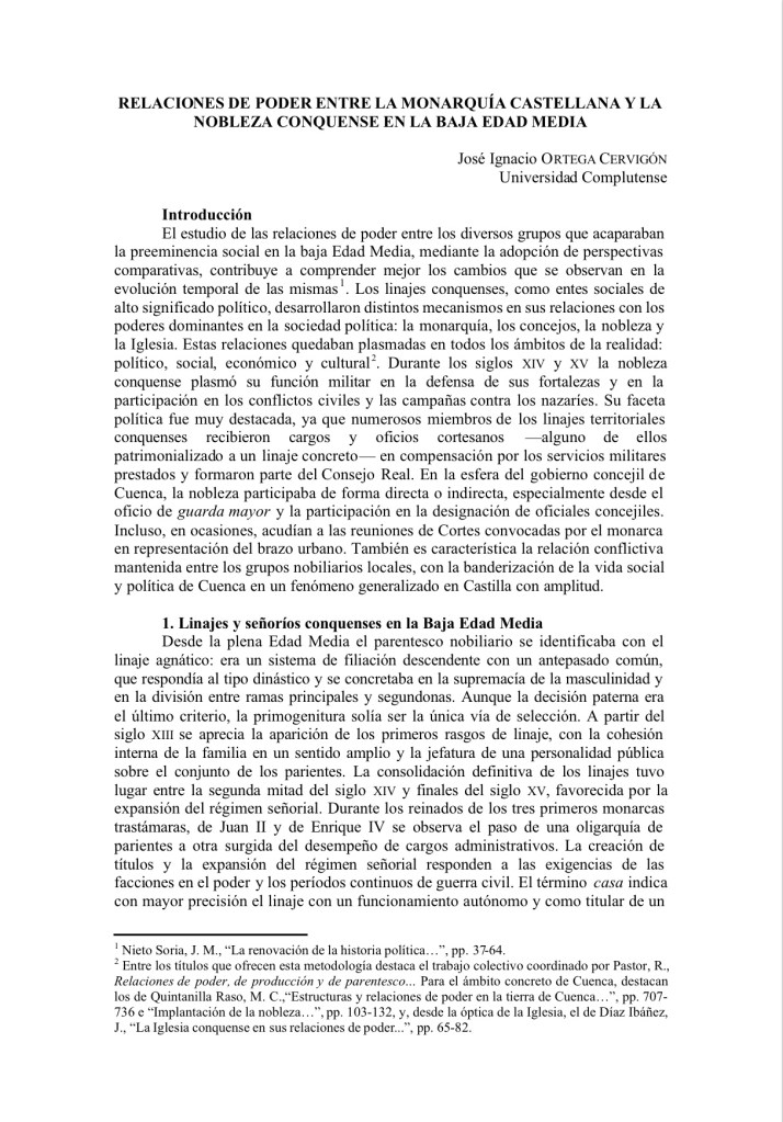 Relaciones de poder entre la Monarquia castellana y la nobleza conquense en la baja Edad Media.