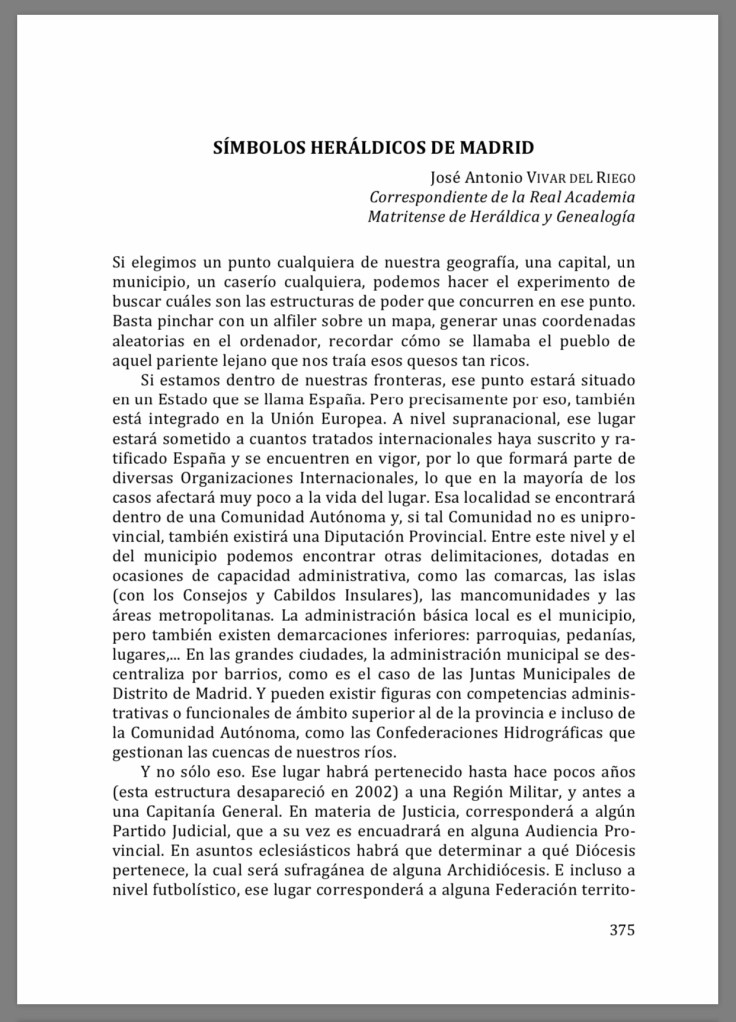 Símbolos heráldicos de Madrid. Símbolos heráldicos de Madrid. Por don José Antonio Vivar del Riego. IR AL DOCUMENTO. Comparte esto: Haz clic para compartir en X (Se abre en una ventana nueva) X Haz clic para compartir en Facebook (Se abre en una ventana nueva) Facebook Haz clic para compartir en LinkedIn (Se abre en una ventana nueva) LinkedIn Haz clic para compartir en Tumblr (Se abre en una ventana nueva) Tumblr Haz clic para compartir en Pinterest (Se abre en una ventana nueva) Pinterest Me gusta Cargando...